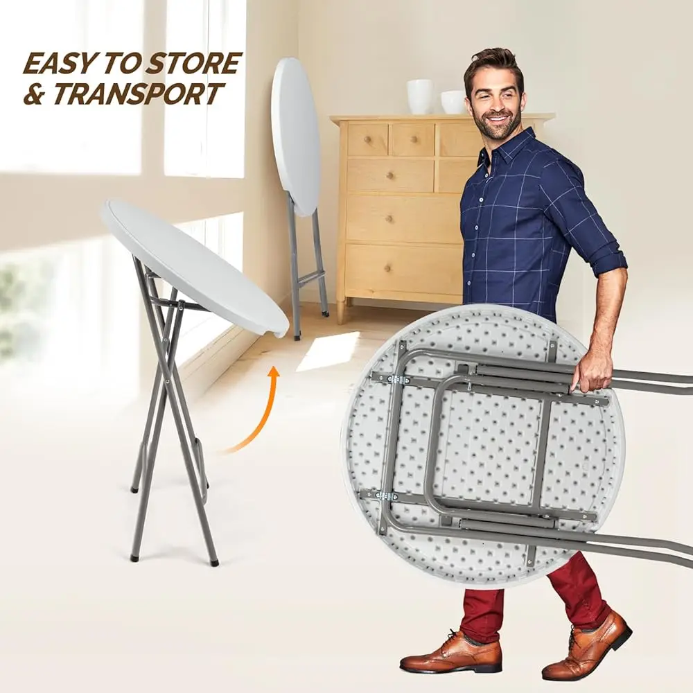 Easy To Set Up And Store: With Its Folding Legs, This Bar Table Can Be Set Up In Seconds And Easily Stored Away When Not In Use. Perfect For Events With Limited Space Or For Those Who Need To Save On Storage. The Overall Size Is 31.5*31.5*43.3 H (L*W*H), The Folded Size Is 31.5*54 H (L*H)