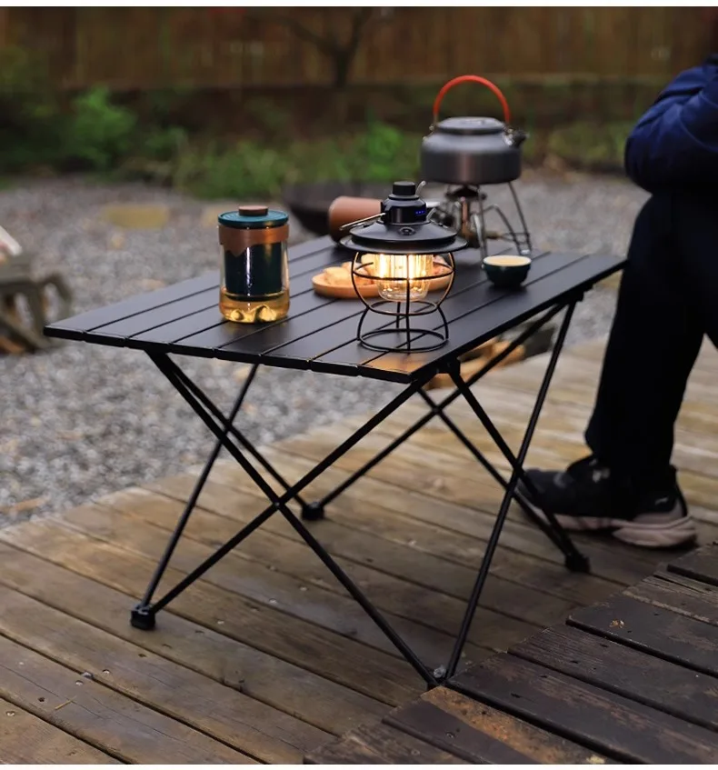 Featuring a foldable design, this table effortlessly transitions from storage to use, making it ideal for camping trips and picnics.