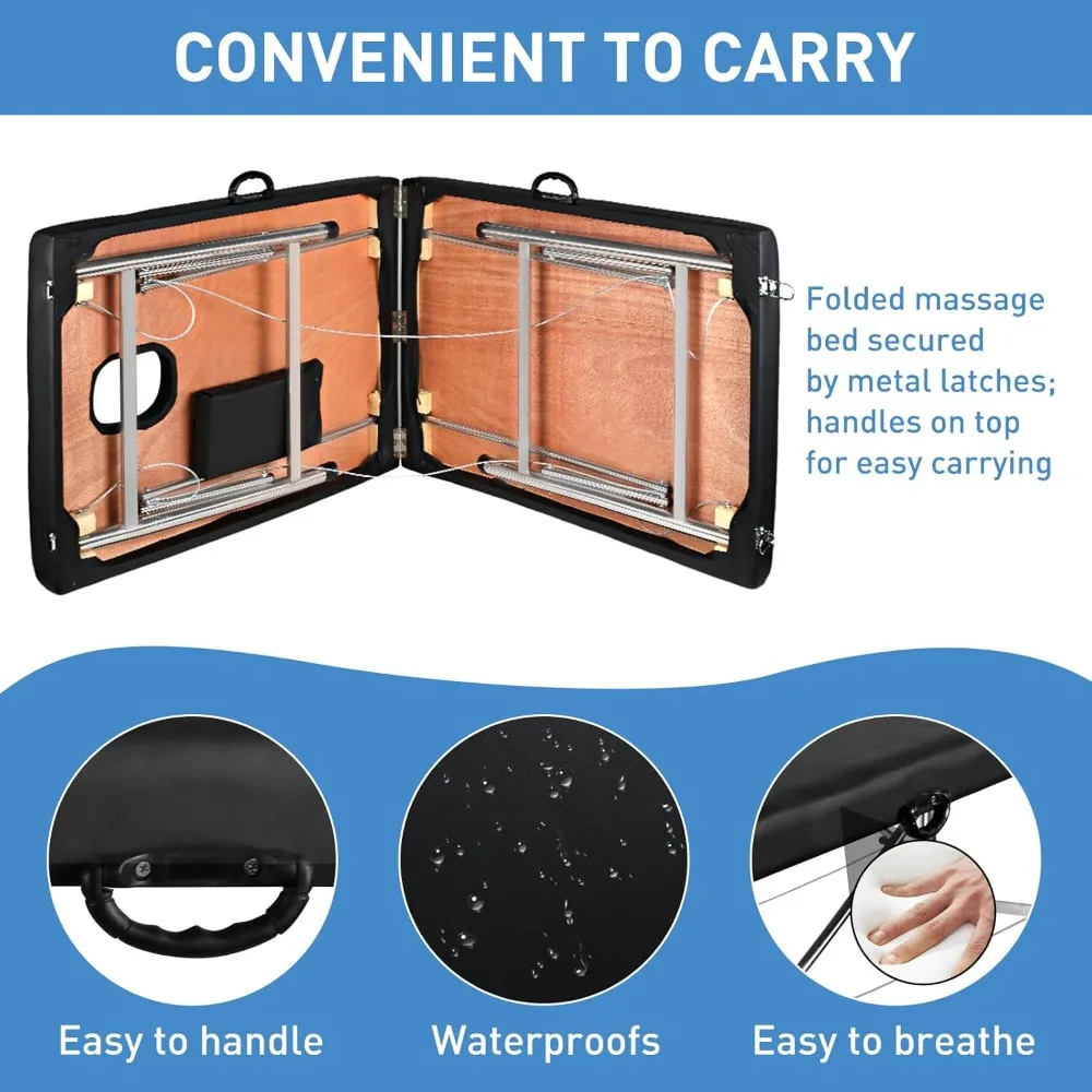 - Ultra-Portable & Lightweight – Made of rust-proof aluminum alloy, this foldable massage bed is easy to carry for mobile services, home use, or travel.